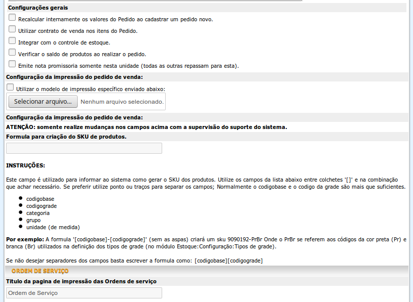 Estas configurações devem ser feitas durante a implantação em conjunto com nosso suporte técnico, pois implicam em mudanças no funcionamento do sistema que será montado para sua empresa.