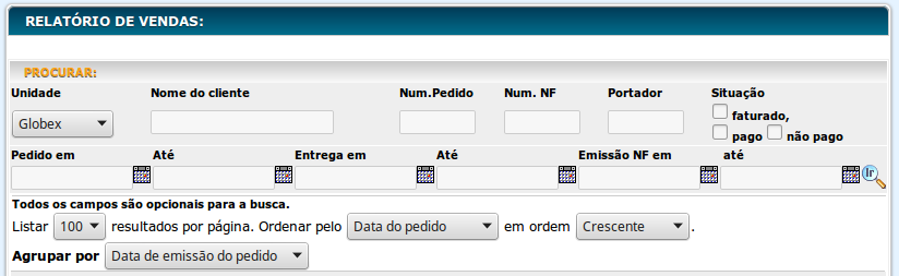 Em todos os relatórios é possível utilizar diversos filtros para extrair as informações da forma que desejar, conforme o exemplo abaixo.