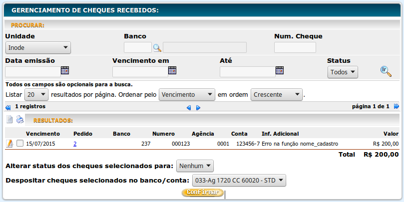 - Alterar o status de um cheque;