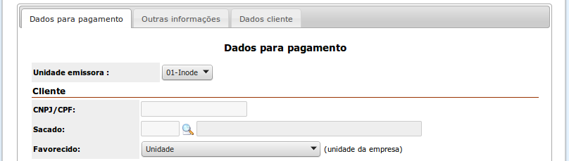 • Favorecido: Escolha qual a Unidade da Empresa desta Conta a Receber.