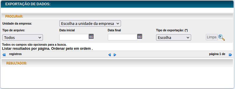 Nesta página o usuário pode exportar os dados financeiros da empresa.