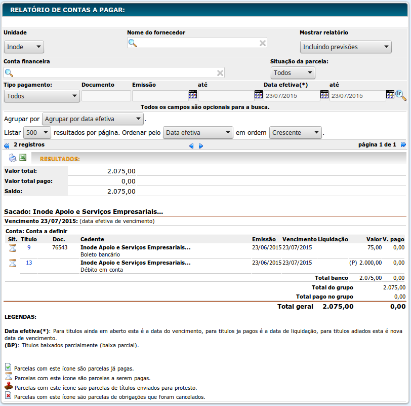 Este relatório mostrará para você todas as contas a pagar, de acordo com os FILTROS que você selecionar.