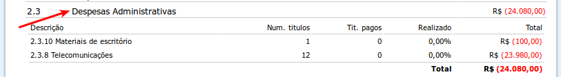 Para ver um detalhe de uma linha, clique sobre ela e o sistema abrirá a visualização detalhada desta conta.