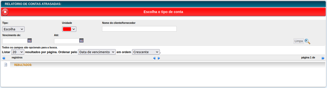 Este relatório mostrará para você todas as contas atrasadas de acordo com os FILTROS que você selecionar.