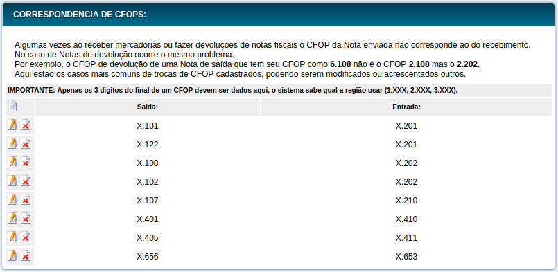 Algumas vezes ao receber mercadorias ou fazer devoluções de notas fiscais o CFOP da Nota enviada não corresponde ao do recebimento.