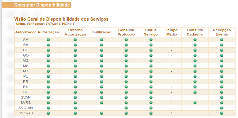 Consultar a disponibilidade dos serviços da SeFaz de todos os estados.