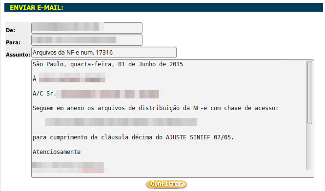 Confira o endereço de e-mail, que foi cadastrado no Cadastro do Cliente e clique no botão Confirmar para fazer o envio.