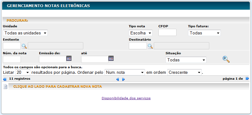 - Núm. da Nota: Informe um número de nota específico para procurar.