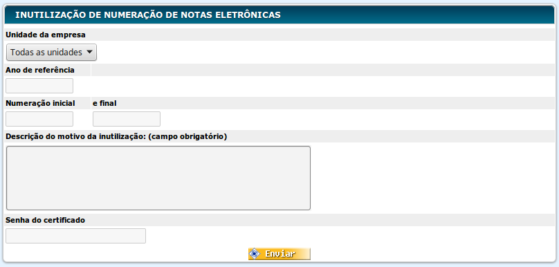 Para realizar a inutilização de numeração preencha os campos abaixo: