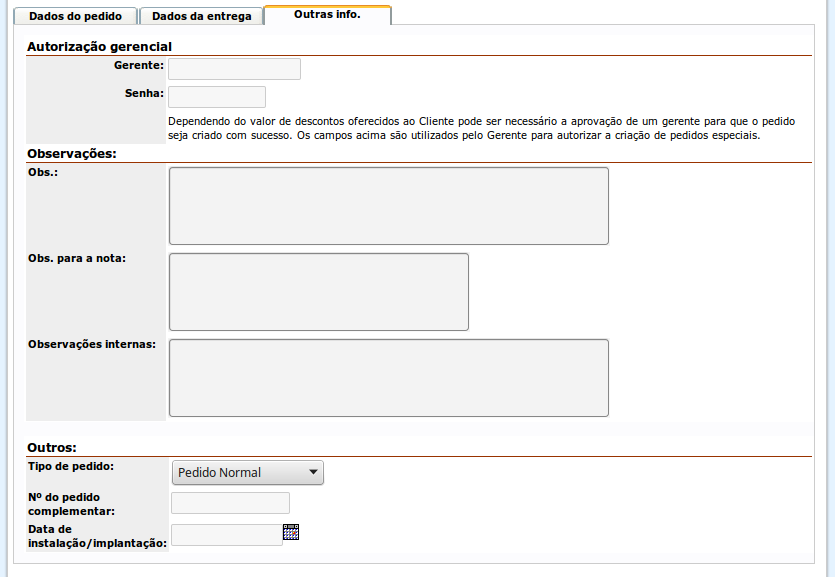 Os campos acima são utilizados pelo Gerente para autorizar a criação de pedidos especiais.