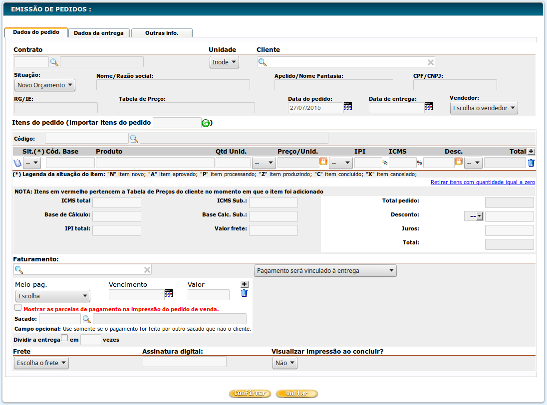 Algumas informações uteis sobre os pedidos de venda do sistema são: