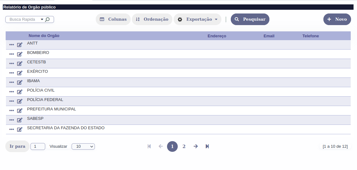 Aqui é feito o cadastro dos orgãos públicos que serão vinculados ao tipo de documento.