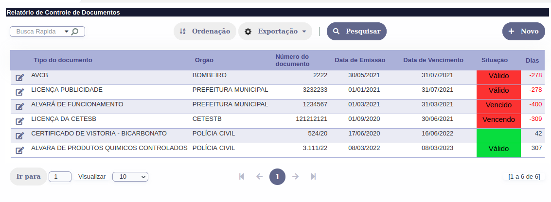 O relatório de controle de documentos é utilizado para gerenciar os documentos criados.