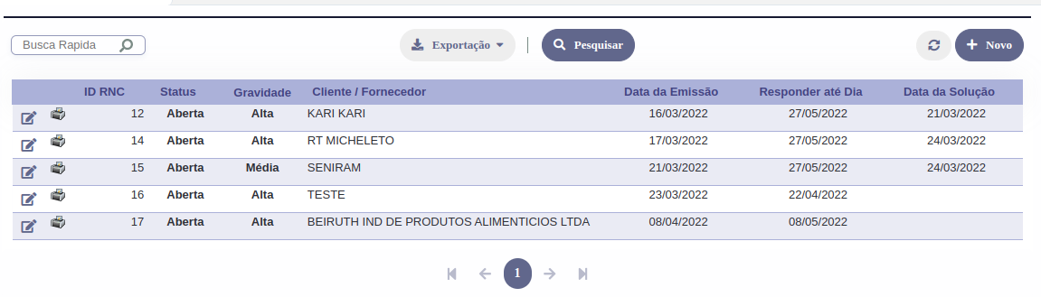 Gerenciamento de Não Conformidades